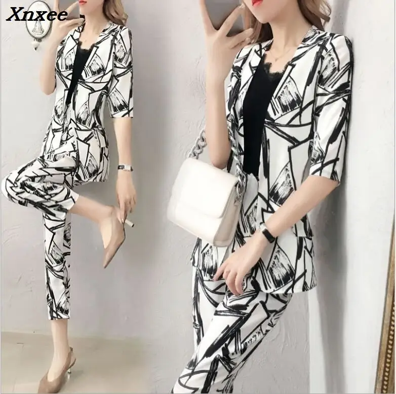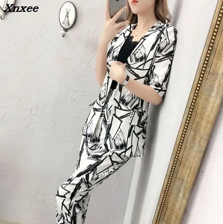 Images of Women blazer set two pieces suit office ladies formal double breasted blazer coat+ ankle pant suit casual loose suit set Xnxee :