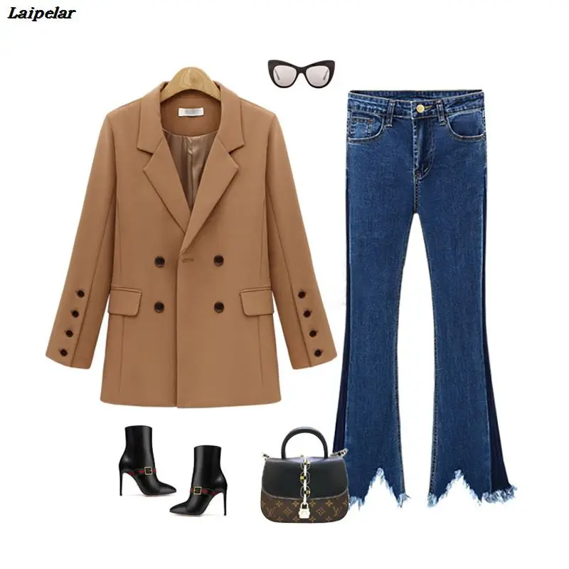 Images of Autumn Winter Suit Blazer Women 2018 New Casual Double Breasted Pocket Women Jackets Elegant Long Sleeve Blazer Outerwear :