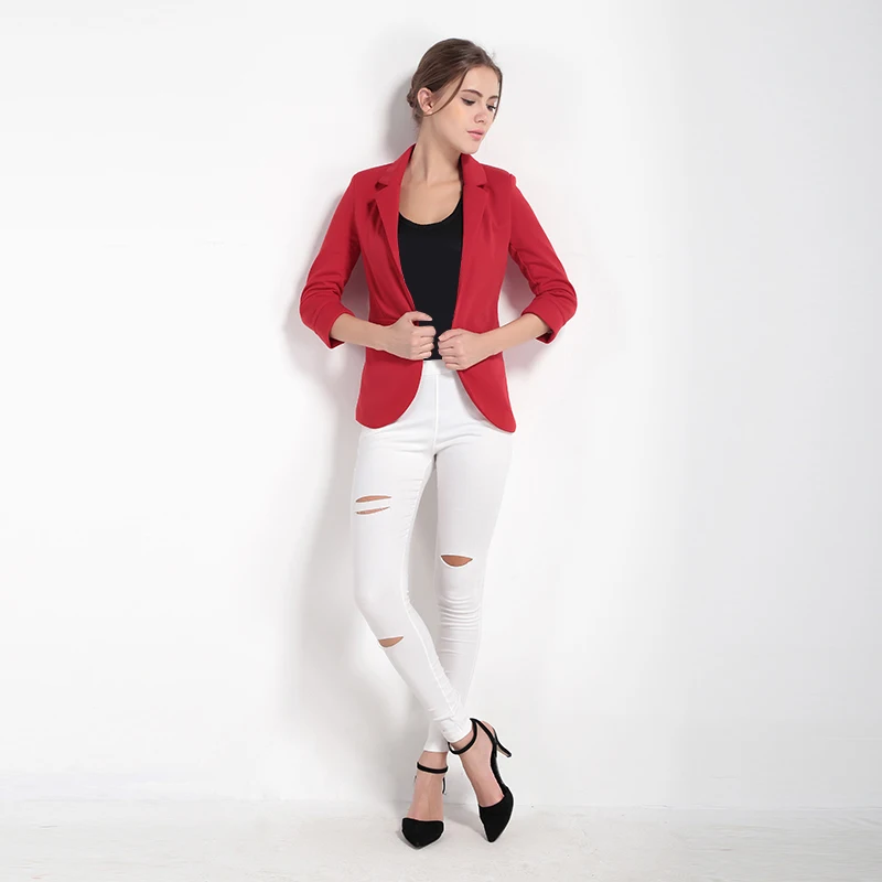 Grab HDY Haoduoyi Solid White OL Lapel Blazer 3/4 Sleeve Workwear White Blazer Jackets Casual Blue Notched Blazer Outwear Overcoat Right Here and Right Now.