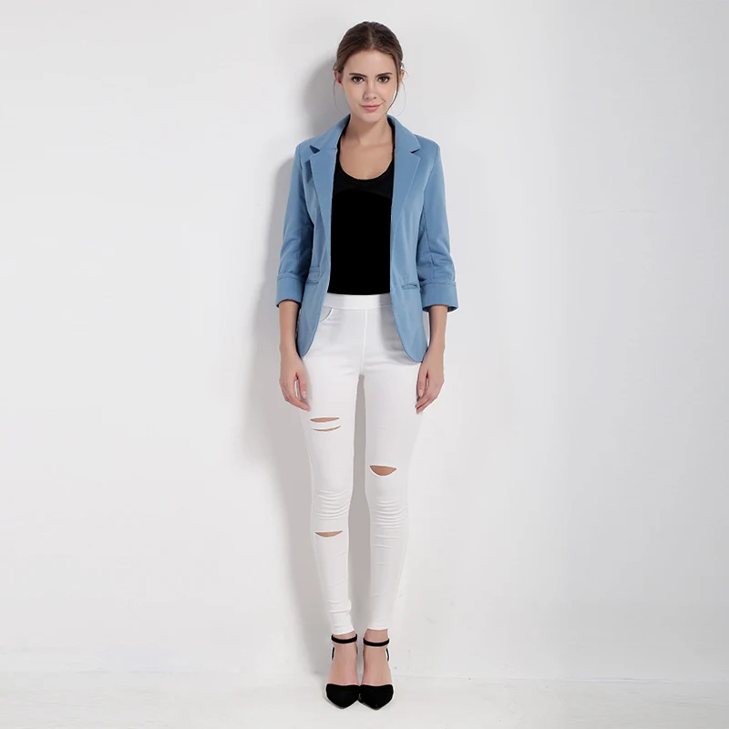 Picture of HDY Haoduoyi Solid White OL Lapel Blazer 3/4 Sleeve Workwear White Blazer Jackets Casual Blue Notched Blazer Outwear Overcoat :