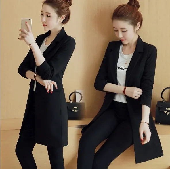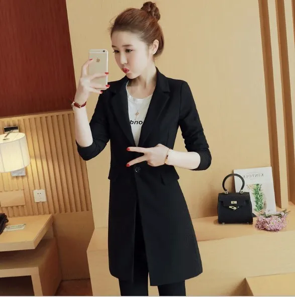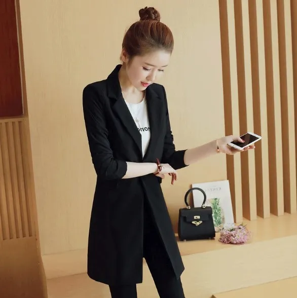 Buy Single Button Black Office Coats Slim Fit Blazer Women Long Jackets Korean Style Ladies Notched Collar Clothing Right Here and Right Now.
